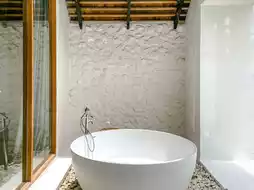 There is a bathtub to soak in and a swimming pool to play