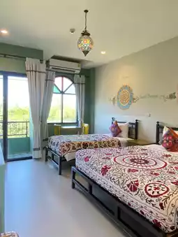 Escape the hustle and bustle and experience the charm of Le Reina Hotel Pak Chong, which is decorated in a unique and stylish way. The colorful tile patterns throughout the hotel invite you to take pictures at every corner. 📸