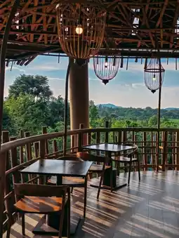 Jamii Coffee House is a popular cafe in Khao Yai, located inside the Dusit D2 Khao Yai Hotel. It stands out with its cave-inspired design, but still maintains a comfortable and modern feel. There are large sofas and coffee tables that are perfect for relaxing or socializing. There are also several comfortable seating areas to choose from, making it feel relaxing and private. 🛖 Another highlight that many people talk about is Jamii Cafe, which is located downstairs from the main restaurant. The upper floor is a large bird's nest-style restaurant for dining, while the lower floor is a small cafe that feels like you're in a cool cave. There are a variety of desserts and ice creams to choose from. Some reviews even say that in the evening, the atmosphere changes to a chill-out bar with a live saxophone, creating an incredibly romantic atmosphere, perfect for a date. 🧁Menu and drinks