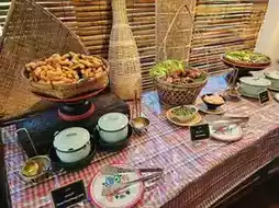 As for breakfast, it is a buffet of Isan food, with sausages, rice vermicelli, stir-fried noodles, coconut pancakes, and many more. It was a very new experience. If you like this style of accommodation, you can come here.