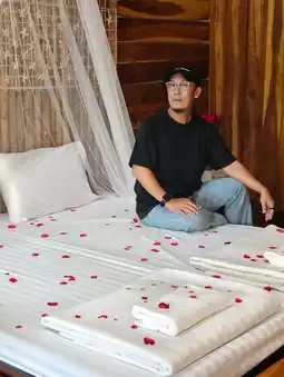 Balinese-style accommodation, rooms with complete amenities, including meals and activities, pets can stay for free