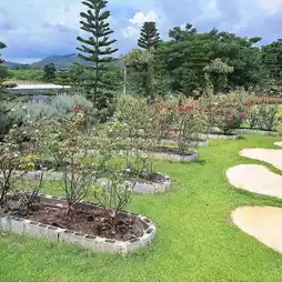 🌸 A flower garden cafe in the middle of a valley with many colors and species of flowers blooming for children to run around. Plus, the view is amazingly beautiful, 360 degrees. Here, there are food, drinks, and bakery.