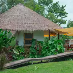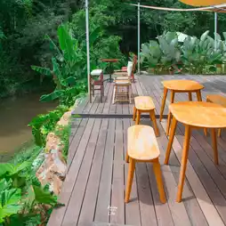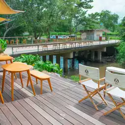 #Let's talk about traveling Khao Yai cafe, camping style, island-like atmosphere, surrounded by streams. lle Cafe & Camping Khaoyai is an open-air cafe with a lawn to sit and chill, listening to the sound of the stream, very quiet and shady. There are coffee drinks, food, desserts to choose from. There are many beautiful photo spots. And this place also has accommodation.