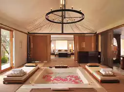 This is a one-paragraph review of Kirimaya Golf Resort & Spa, located at the foot of Khao Yai National Park in Pakchong District, Nakhon Ratchasima Province. The 18-hole championship golf course, designed by Jack Nicklaus, is approximately 7,100 yards long and features a layout full of natural beauty that makes use of the undulating terrain, waterside, and forests, and is designed to give each player a sense of privacy.