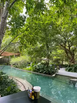 Infinity pool surrounded by a lush garden đŋâ˛, with tons of cool photo spots đˇđ§âī¸