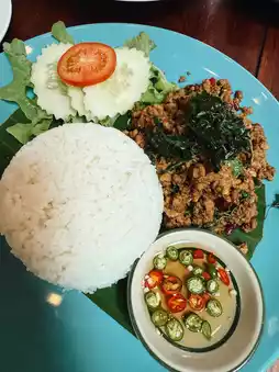 🍛 One-dish meals Thara Roast Pork Rice 🐷, Sausage Fried Rice, and Spicy Somtam 🌶