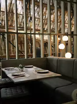 🏡 A garden-like restaurant and cafe, lush with trees and lush greenery, perfect for escaping the hustle and bustle of the city.