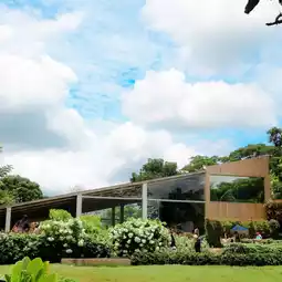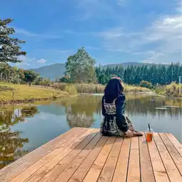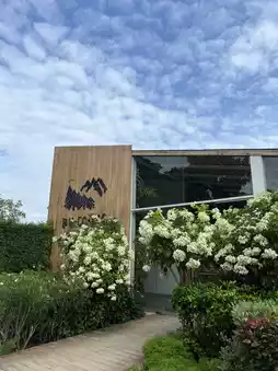 When in Khao Yai, don't miss Bucolic Khaoyai, a mountain-view cafe with a truly international feel. The shop is made of transparent glass, offering a panoramic view of the natural surroundings. Every corner is truly stunning for photos. There's even a mini zoo where you can feed the sheep and rabbits, making for a truly enjoyable experience. The menu is extensive, with soft and creamy coconut cakes, pizzas with generous toppings, and refreshing, cold drinks. It's a great value! A one-stop destination for chilling, eating, enjoying, and taking photos.