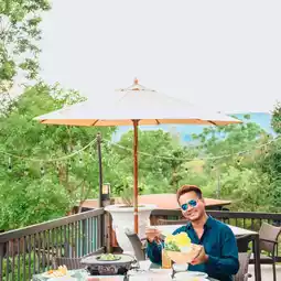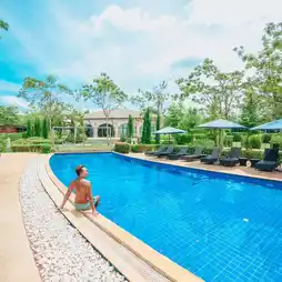 including a swimming pool, restaurant, and cafe