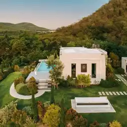 A 3-hour drive from Bangkok and discovering this stunning view is the ultimate escape. Relax in this ultra-chill villa in Pak Chong District. I can tell you it's beautiful and has an amazing atmosphere. This modern, white villa is perfect for families and friends. The highlight of this villa is its hillside setting, offering 360-degree mountain views. It's also close to popular attractions like Khao Yai National Park, vineyards, chic cafes, and Rai Thong Somboon. Even though I visited during the rainy season, the weather was wonderfully lush and humid with a light mist. If you visit during the winter, you'll be thrilled!