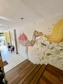 But the staff recommended taking photos of the walls on each floor, as they're all unique and beautiful. The owner personally painted every floor, and the decor is all Moroccan. I asked the hotel staff, and they told me the owner graduated with a degree in interior design, which really captures the artist's spirit. 🦋🐞🪲🐝