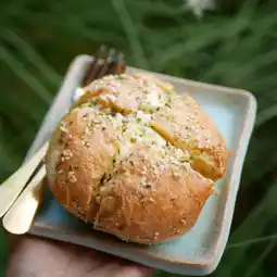 We ordered a dessert: 🥐Almond croissants and garlic cream cheese bread, served warm and delicious together.