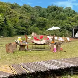 𓂃 A Pak Chong cafe surrounded by trees and a soothing lush mountain view. The atmosphere is great, with seating offering a 360-degree view of the mountains.