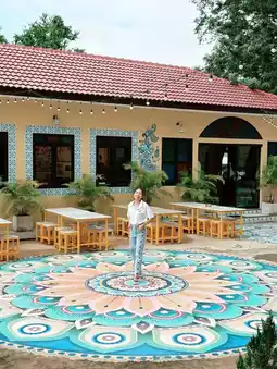 La Reina Maroc Hotel, La Reina Maroc Hotel - Pak Chong, Khao Yai, 5-story accommodation, swimming pool, decorated with brightly colored patterns, Moroccan style. Opposite the guest room building is a small cafe with beading and coloring activities, cool air conditioning, comfortable seating, spacious parking. #visitKhaoYai