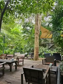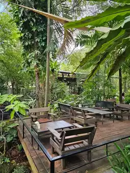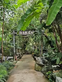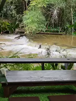 This riverside restaurant and cafe is surrounded by forest and next to a small waterfall. There are plenty of photo spots. There are both indoor and outdoor seating areas, perfect for a relaxing getaway.