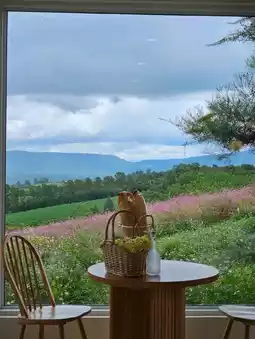 We're sharing the location of this beautiful cafe with mountain views and a beautiful flower field for cafe lovers to take photos, check in, and chill.