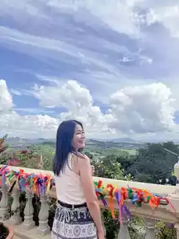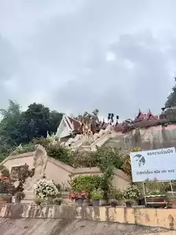 Another interesting temple in Khao Yai that you must visit. The view from this temple is absolutely stunning as it is located on a hill. The road up might be steep, so be prepared. For women, wearing shorts or short skirts is not allowed, but the temple provides sarongs if needed. The atmosphere at the temple is incredibly serene, offering a breathtaking 360-degree panoramic view. It's a place where you can both make merit and capture beautiful photos with the scenic mountains. Don't miss it!