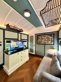 The Tram has finally arrived after almost two years of waiting. So, I'm back to stay again. Although it's only a system test drive, running only occasionally, after a while. It's still one of my favorite hotels because every time I come, we sleep in a different theme, especially in the train zone. Each car has a different decor.