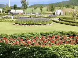 This replica village is designed in the exact style of rural Italy, surrounded by lush green mountains.