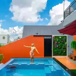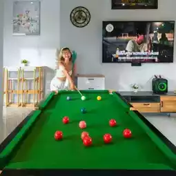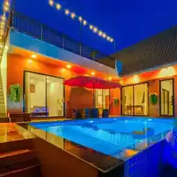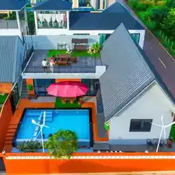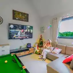 • It's fully equipped with karaoke, a pool table, and a swimming pool.