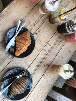 The cafe is decorated in tones of white, wood, and green, creating a cozy, minimal feel. Every corner is effortlessly photogenic. 📸