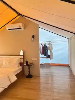 A peaceful camping-style resort located on Thanarat Road. Every room has a mountain view. Pets are allowed for an additional 300฿ per pet. Check-in and check-out times are subject to availability. Overall, the resort is quite good, but the service is okay. The rooms are nice, the staff are friendly, and the resort offers privacy. There's a grill for grilling.