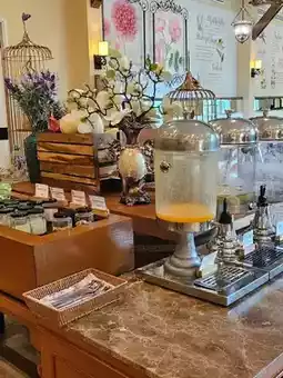 The resort is designed in a French Country Style 🏰, featuring soft white and gray tones, with stone and wood elements that create a warm and cozy atmosphere 🏡. The rooms are spacious with soft beds 🛏️, some offering balconies with mountain views 🌄, bathtubs 🛁, and full amenities 📺📶.