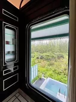 It features 64 rooms, suites, and villas, including 45 rooms and suites, and 19 heritage train carriages converted into villas.