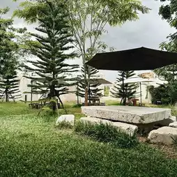 A cafe in Khao Yai, a large shop decorated with large stones like Stonehenge, which is the highlight of the shop. There is also a building used for organizing events. Overall, the atmosphere is good, there are many seats, shady, beautiful trees, suitable for those who like to take pictures. You can taste the tea and desserts, which are delicious. The price is normal for a cafe of this level.