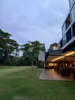 ⛰The hotel is quite quiet and peaceful, perfect for recharging your batteries during the weekend. There are many activities to do, such as cycling, yoga, and spa. Once you're in, you won't want to go anywhere. The ground floor of the building is open to the air, allowing you to see trees, grass, a large green lawn, and a clear view of the mountains. Around the hotel, there are various corners with beautiful seating areas where you can take pictures from many angles. If it's winter, come and enjoy the cool breeze, sip some warm coffee, and enjoy the natural view of the mountains.