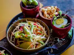 We had lunch at the hotel's restaurant, ordering papaya salad with crab and minced pork salad. Let me tell you, the Isan food here is delicious and they give a lot.