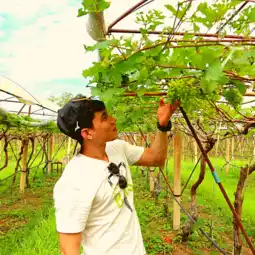 🥈 After taking photos for about 20-25 minutes, they took us on a car to see the winery. Along the way in PB Valley, we will see grapevines planted in rows all around. Then we will go to see the winery. There are both types of wines that are aged in traditional wooden barrels. And the new temperature-controlled tank