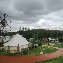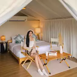 🌿 𝐒𝐎𝐋 𝐆𝐥𝐚𝐦𝐩𝐢𝐧𝐠 Khao Yai accommodation in a camping style. It is an air-conditioned tent with a private bathroom and complete facilities. Most importantly, the view is very beautiful. You can see the surrounding pine trees and mountains. It feels very foreign. And most importantly, it is a pet-friendly accommodation.
