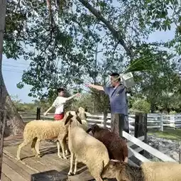 Charter a car, the entrance fee is 50 baht, 100 baht per person, which includes entrance and three kinds of feed (fresh grass, two bottles of milk and rabbit food). The sheep run around freely on the grass, be careful they will chase you too enthusiastically... the food in your hand. Sometimes there are other activities: egg-laying, mushroom-growing, lettuce-harvesting, pizza-making...