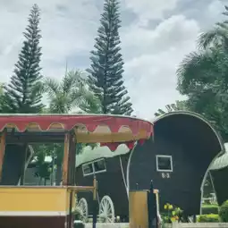 • We paid about 50 baht for the tram 💸 If I remember correctly, they will take us to see the farm from the entrance to the activity area. If you want to play the rides, you can get off right away. If you don't want to play, you can sit back and enjoy the view again. 💐