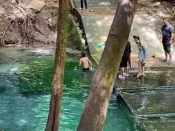 At Khao Yai-Pak Chong Natural Spring or "Ban Tha Chang Natural Spring" located in Tambon Mu Si, Pak Chong District, Nakhon Ratchasima Province, a popular tourist attraction, well-known to tourists who can play water all year round. The spring water here has about 4 ponds or levels, and there is a dam to prevent water from flowing into a waterfall where people can play water. However, only the area that is the spring is not allowed to play. The atmosphere around the spring is full of trees, very shady. There is also a kayak service for you to have fun.