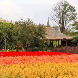 🚩 After worshiping and asking for blessings, don't forget to stop by to take a photo and check in at Sappaya Garden. Walk to see beautiful flowers that are blooming to welcome tourists. There is also a coffee shop in the garden and a cactus farm of various types, which are open to visitors for free. And for those who want to raise strange species of cacti, the farm also sells them.