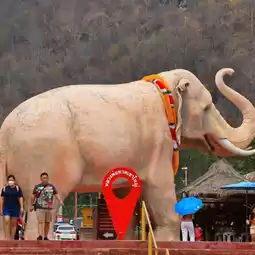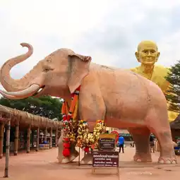🔸 Crawling under the elephant's belly with the white elephant that is Luang Por Thuad's partner. It is believed that crawling under the elephant's belly will help increase your merit, progress, and health.