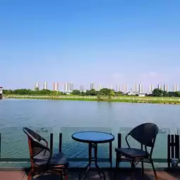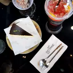 High Octane Café is a riverside cafe. The cafe is a black gable roof. The interior is tall and airy with large glass panels around the cafe. There are both indoor and outdoor seating areas. The outdoor area is the highlight of the shop. It's great and very chill. The atmosphere is great in the evening. The wind is cool and comfortable. You can sit and drink coffee, eat cake, or eat steak here. The owner is very friendly. He recommends drinks and desserts very well. He's cute. I love it. The barista is also good. Everything is good. You should come ❤ ~