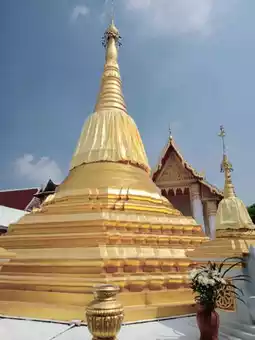 ✨️Wat Sao Thong Thong Walk🚶♀️ about 300 meters past Wat Pai Lom. This temple has a starfruit-shaped pagoda, a twelve-sided pagoda.