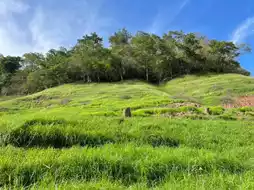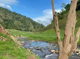📸 There are many natural photo spots, including streams, fresh green grass, and long mountain views.