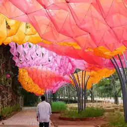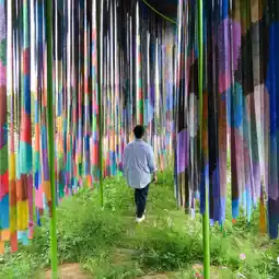 This year, Art on Farm presents works that deeply connect art from various cultures with the farm's area. Focusing on the use of local materials, handicrafts, sustainability and ecosystems, such as Pinree Sanpitak, Mit Jain-in, All (Zone), Angkrit Atchariyasophon, along with Keokamol Niyom, Sittikorn Khaosa-ard, Sanitat Praditthatsanee, Chata Maiwong, Somlak Pantiboon, Giles Rider, Boonpon Pothisan, Kelsey Wagner, Nakprachan Uthayotha, Tings Matter (Sawinee Buranasilpin and Tom Dannaker), Athitayaporn Saenphothi, Natthida Phalasak, Nawin Lawanchaikun, and works from a workshop by a group of graduate students from the Faculty of Architecture at Columbia University, New York. In addition to the artwork, this year’s Art on Farm also features an art viewing route through stories “Lan Siao Home” for families to integrate learning about stories and legends by Keokamol Niyom.