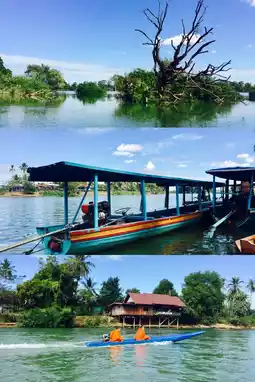 Take a "yacht" in the river branch of "Four Thousand Beauty Islands" to shuttle among unknown islands. You can enjoy the scenery of palm trees and sparse houses on the Mekong River as the river breeze blows.