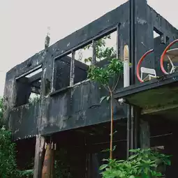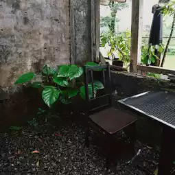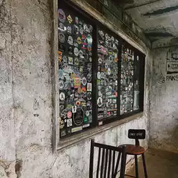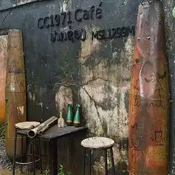 A cafe in Paksong, southern Laos, repurposed from a former power plant after the war. The cafe still retains traces of bullet holes and cracks from bombs.