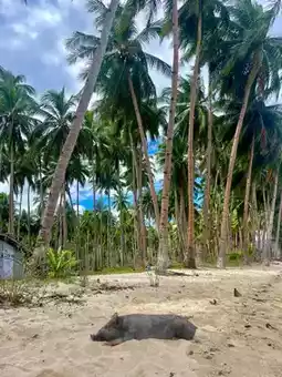 Apart from its stunning atmosphere, Coconut beach has some friendly pigs around the shore.