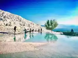 The appearance of Pamukkale is like a snowy wonderland, as beautiful as a white snow fairyland.