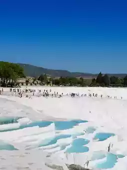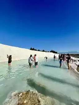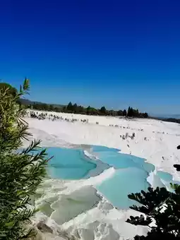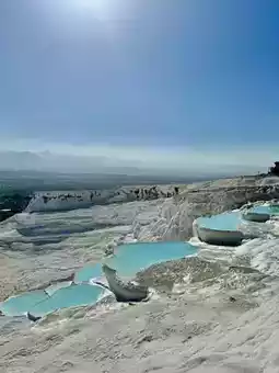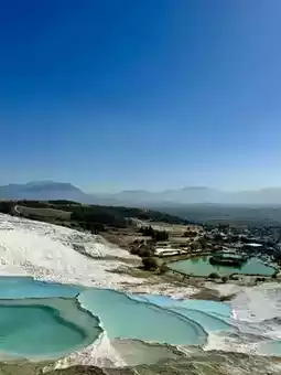 Pamukkale is known as the most beautiful hot spring in the world and is currently listed as a World Heritage Site along with the ancient city of Hierapolis. It is formed due to the cooling and calcification of hot springs and the accumulation of special hilly terrain, forming a snow-white terraced landscape. Such a rare scenery is only found in Yellowstone Park in the United States, Huanglong Scenic Area in Sichuan, and Pamukkale in China. It is super beautiful❤️