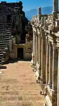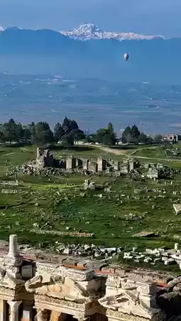 The ancient city of Hierapolis is adjacent to Pamukkale. The ancient city has a long history, and the ruins show the glory of the past. There are ancient theaters, baths, streets, and other relics. The theater is large in scale, and although it has gone through the years, you can still imagine the lively scenes that were once staged here. The bath ruins show the exquisite lifestyle of the people at that time, and walking among them, you can feel like you are traveling through time and space to talk to the ancients.