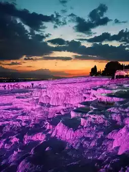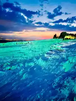 Hierapolis-Pamukkale, a World Heritage Site in Turkey, is famous for its fantastic scenery of pure white travertines, but it is especially beautiful at dusk! 🌄✨🌊 The best time to visit is at sunset! The orange sky is reflected on the pure white travertines and the blue hot spring water, creating a scene that seems like another world ✨📸 How to enjoy the sunset✔ Watch the sunset while soaking your feet in the hot springs of the travertines♨️✔ Photograph the sunset and the whole of Pamukkale from a high place📷✔ Relax while watching the romantic scenery🌍 Recommended season & time Spring to autumn is the best season! Especially if you visit one hour before sunset, you can enjoy the ever-changing colors of the sky🌇✨ The sunset at Pamukkale is like being in a dream, it's a spectacular view that you'll want to see at least once in your life! 💙✨