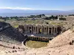 The ancient city of Hierapolis is a historical site located above Pamukkale. It was built by King Pergamon in the second century BC and named after Hiera, the wife of Telephus in Greek mythology. It has a mix of Greek and Roman architectural features, including temples, theaters, aqueducts, baths, and arches, which are quite magnificent and ancient.